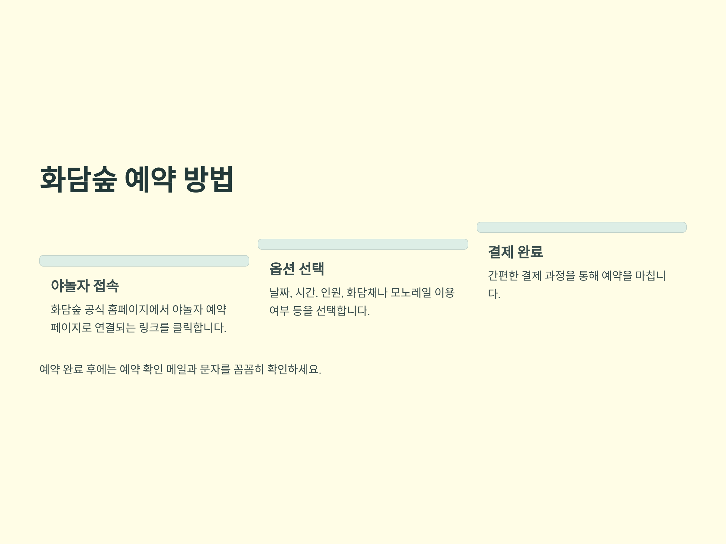 화담숲 공식 홈페이지에 가면 야놀자 예약 페이지로 바로 연결되는 링크가 있어요. 그걸 클릭해서 들어가면 날짜, 시간, 인원, 화담채나 모노레일 이용 여부 등을 선택할 수 있고, 추가 상품도 골라 담을 수 있어요. 정말 간단하죠?