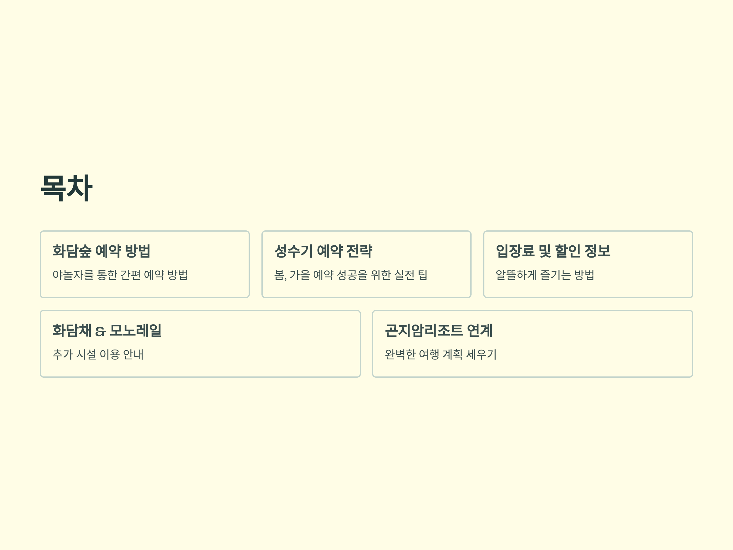 화담숲과 곤지암리조트 여행 계획은 야놀자를 이용하면 편리해요. 하지만 성수기에는 예약 경쟁이 치열하니 미리 준비하고, 할인 혜택도 놓치지 마세요. 화담채와 모노레일 이용도 미리 고려해 보시고요.