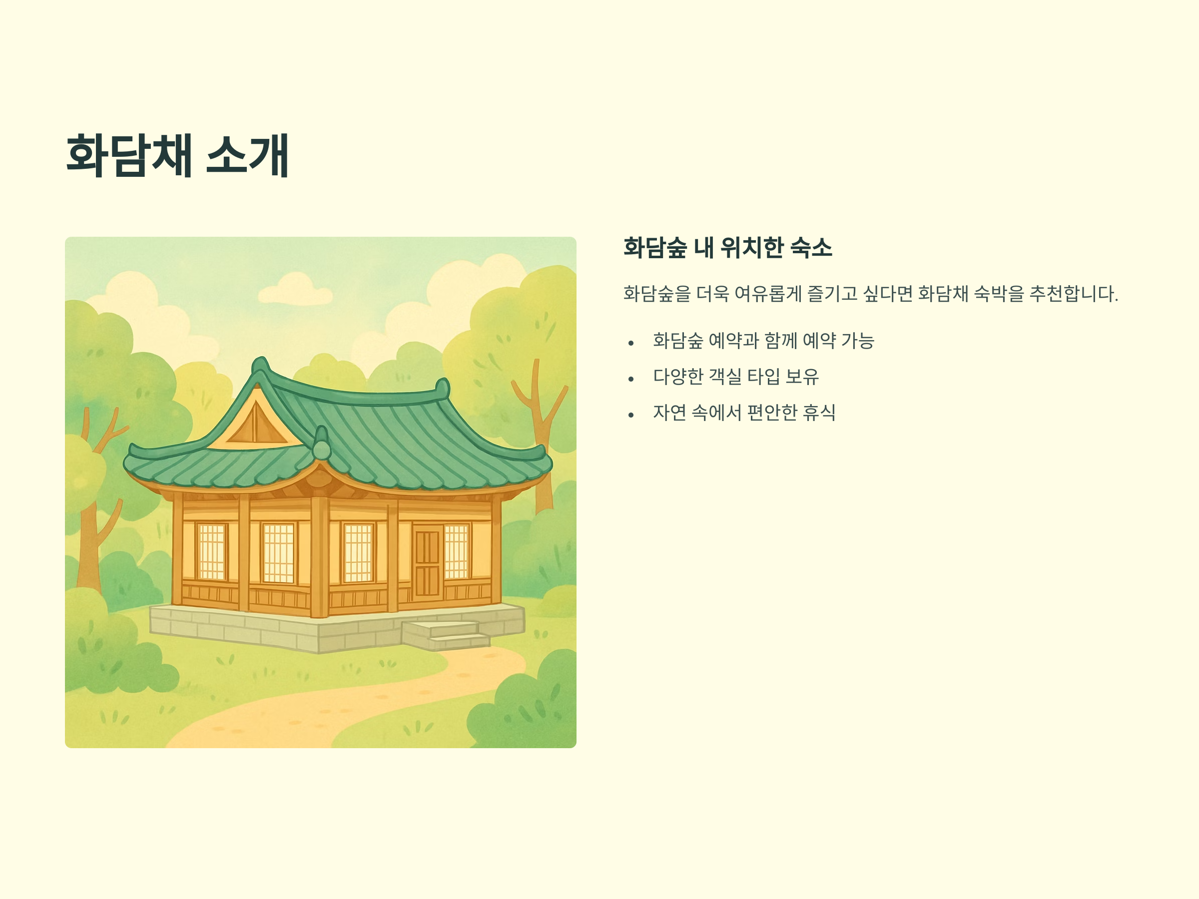 화담숲을 더욱 풍성하게 즐기고 싶다면 화담채와 모노레일 이용을 추천드려요. 화담채는 화담숲 안에 있는 멋진 숙소고, 모노레일은 화담숲의 아름다움을 편리하게 감상할 수 있는 교통수단이죠.