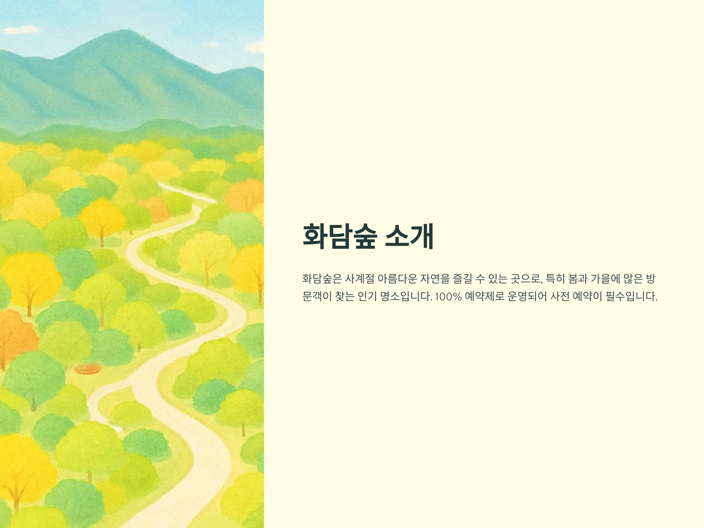 화담숲은 100% 예약제라 봄, 가을엔 예약 전쟁이에요. 정말 힘들죠? 저도 처음엔 엄청 애먹었어요. 하지만 이젠 달라요! 야놀자를 이용하면 훨씬 쉽답니다.