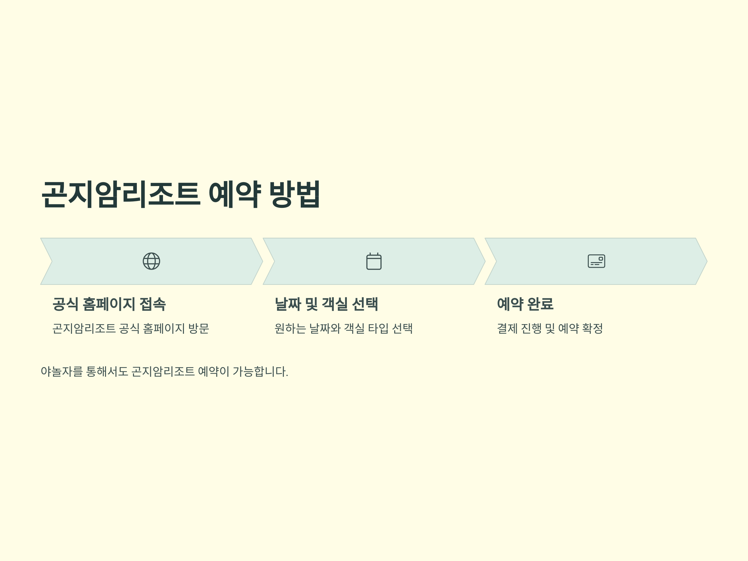 곤지암리조트 예약은 곤지암리조트 공식 홈페이지나 야놀자에서 가능해요. 리조트 예약도 성수기에는 경쟁이 치열하니 미리 예약하는 게 좋겠죠? 화담숲과 곤지암리조트를 함께 예약하면 더욱 풍성하고 편안한 여행이 될 거예요.